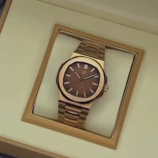 The Pagani Design PD-1728RG embodies refined elegance with its striking rose gold case and deep blue dial. Crafted for men who appreciate understated luxury, this automatic timepiece combines classic design with advanced watchmaking precision.