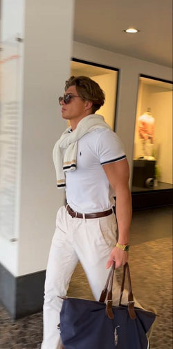 A modern take on a style icon, this polo is crafted from cotton with a hint of stretch for effortless movement and all-day comfort, and finished at the placket with genuine mother-of-pearl buttons.
