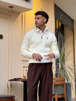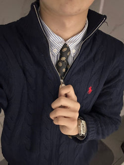 - Ribbed Polo collar. Three-button placket. Genuine mother-of-pearl buttons custom-developed with a RL logo.