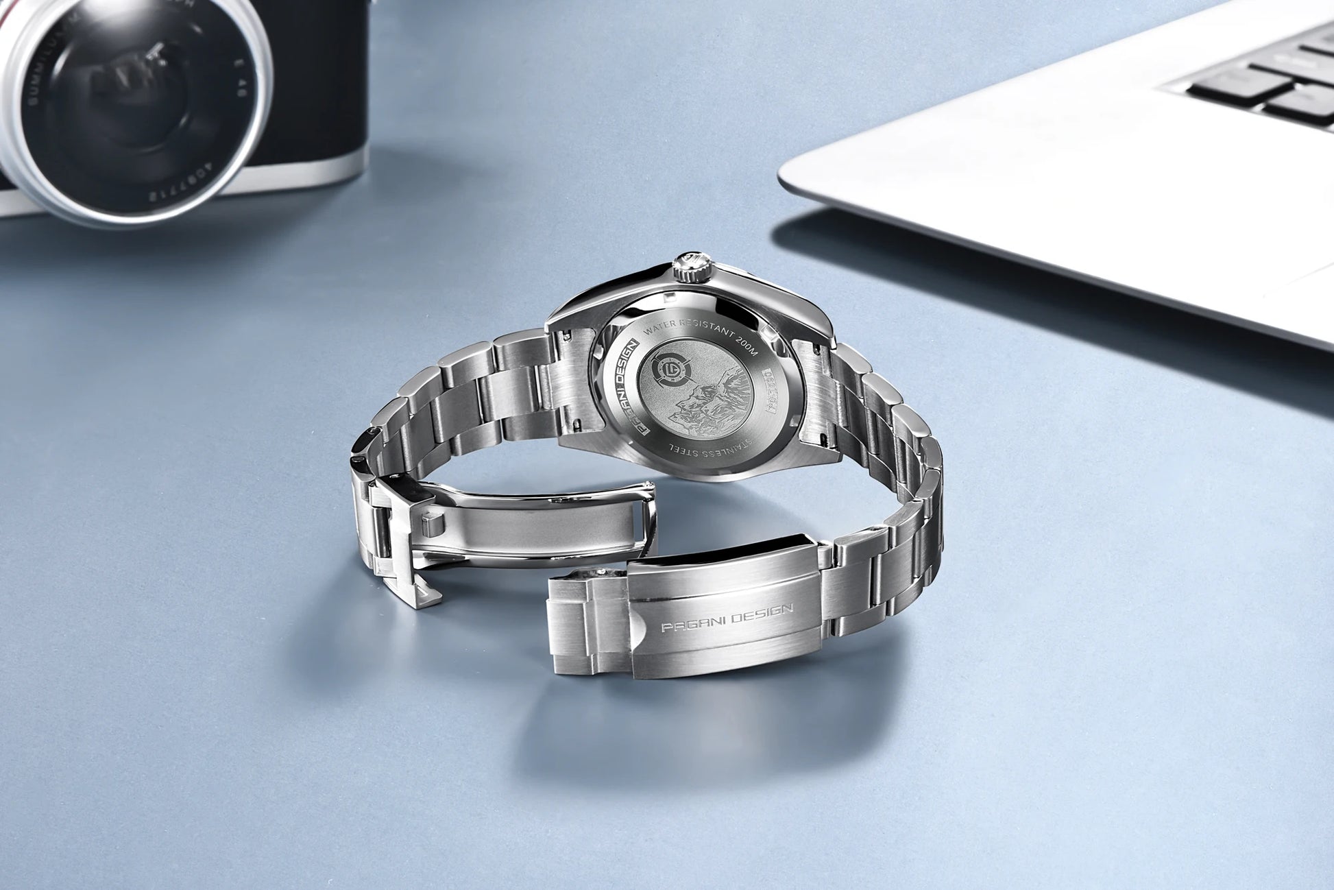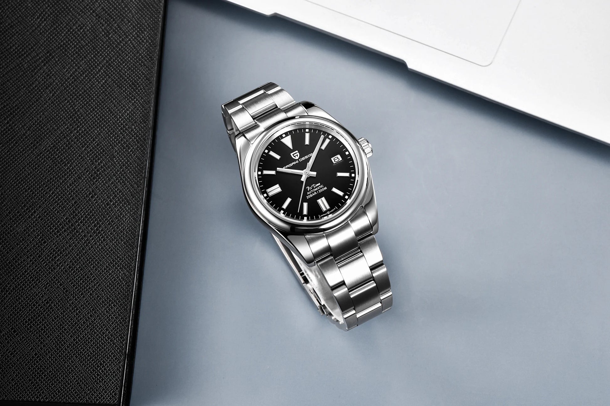 The Pagani Design PD-1690 delivers professional-grade performance in a sleek, wearable 39mm size. Built with 316L stainless steel, a scratch-resistant sapphire crystal, and powered by the reliable Seiko NH35 automatic movement, this timepiece blends functionality with timeless design.