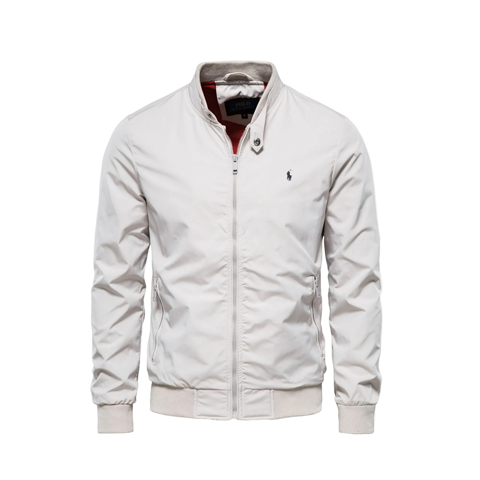 Crafted from a durable yet comfortable fabric, this bomber provides excellent protection from wind and light chill while maintaining a lightweight feel. Thoughtful details—such as secure zip pockets, ribbed cuffs, and a fitted hem—ensure an elegant fit and premium finish.