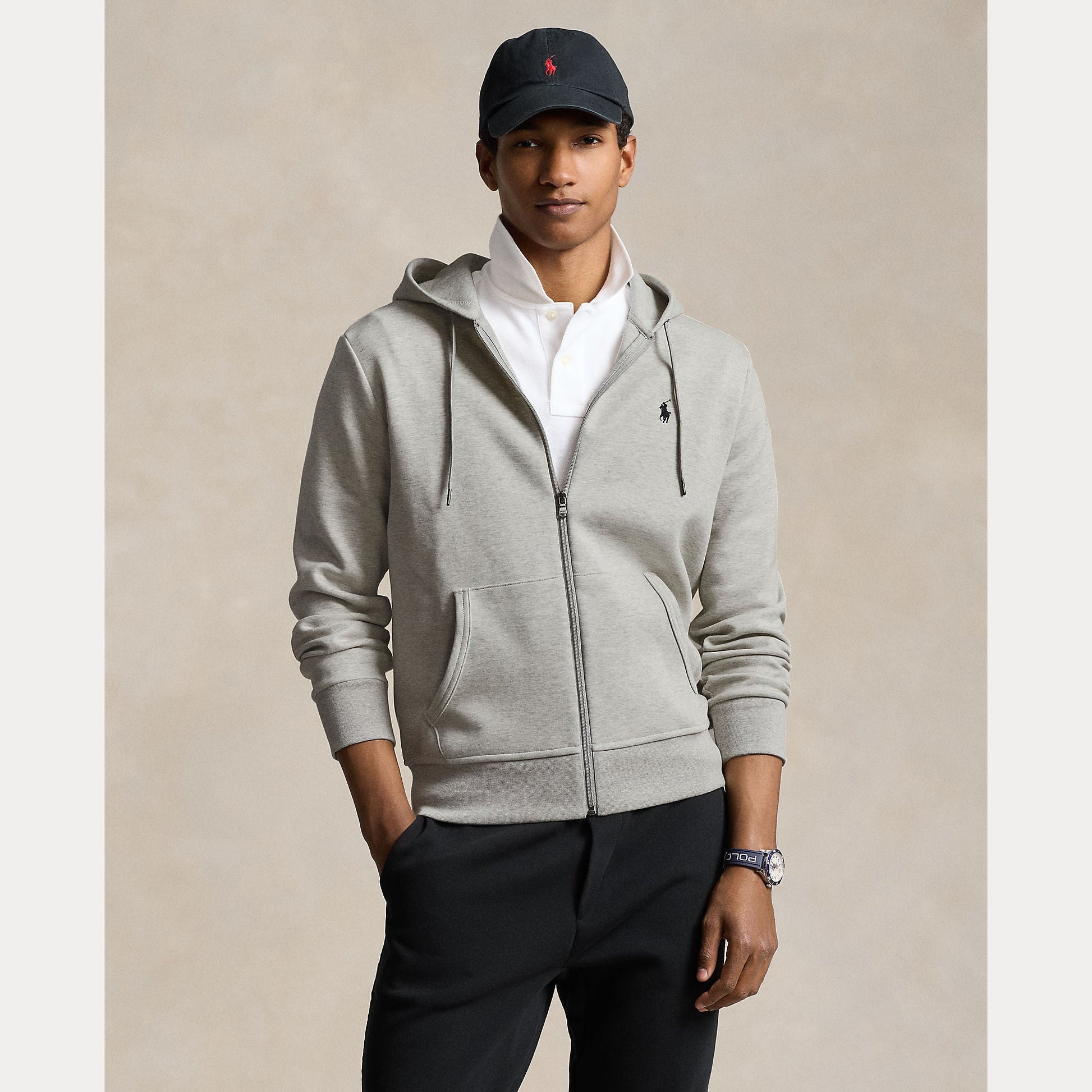 R L Double-Knit Full Zip Hoodie - Grey